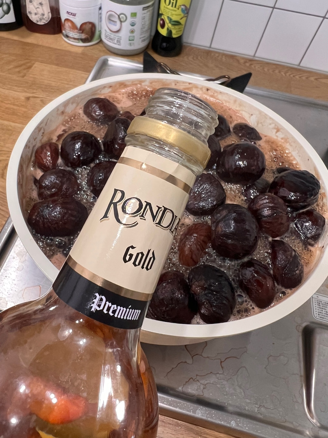 물이 반쯤 졸아들었을 때 간장 한 스푼으로 간을 해주고 더 깊은 풍미를 위해 럼주도(또는 와인, 생략가능) 한 스푼 넣어주었다. 이제 10분 정도 더 졸여서 완성하면 된다.