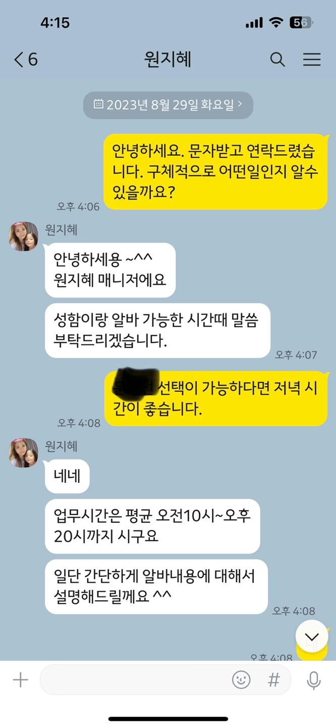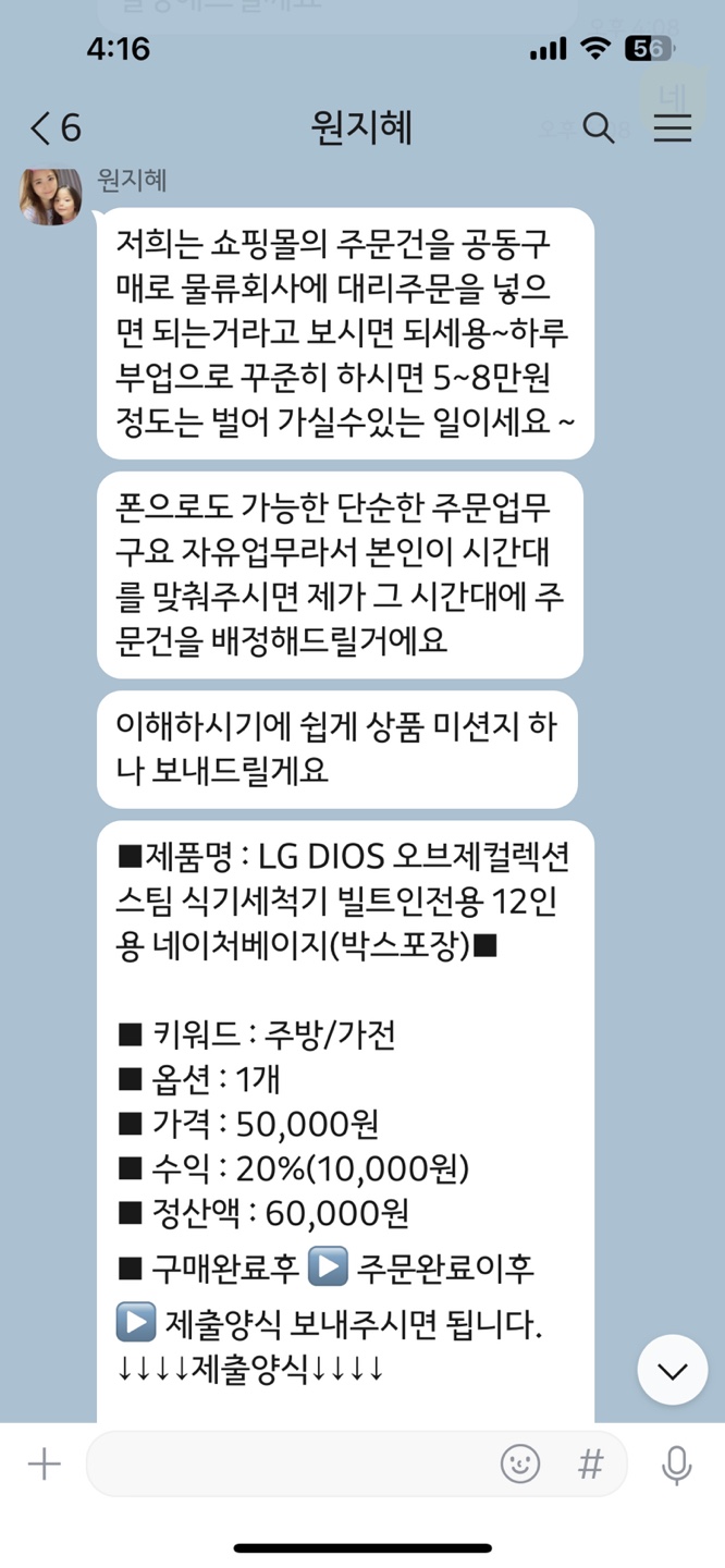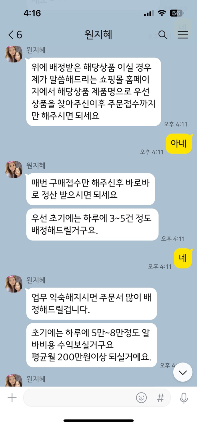 뭔가 나만 모르는 방법들이 있는 걸까 호기심에 문자로 남겨진 카카오톡 아이디를 추가해서 무슨 알바인지