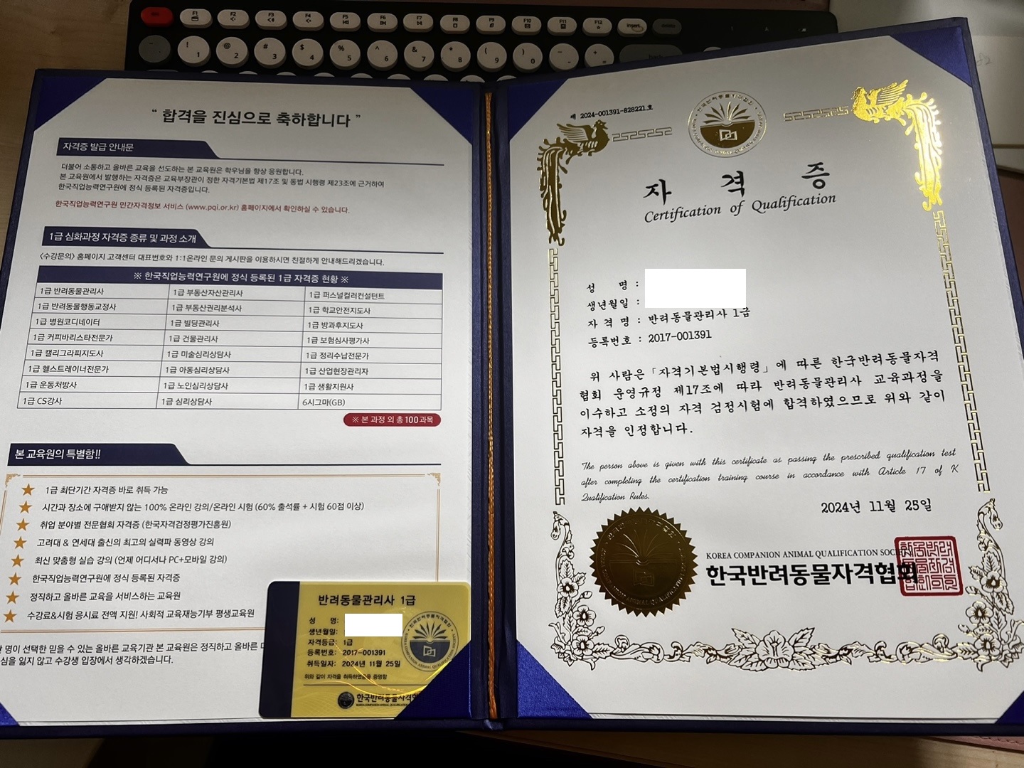 우연히 SNS에 반려동물관리사를 무료로 취득할 수 있다는 광고를 보고 알아봤습니다.