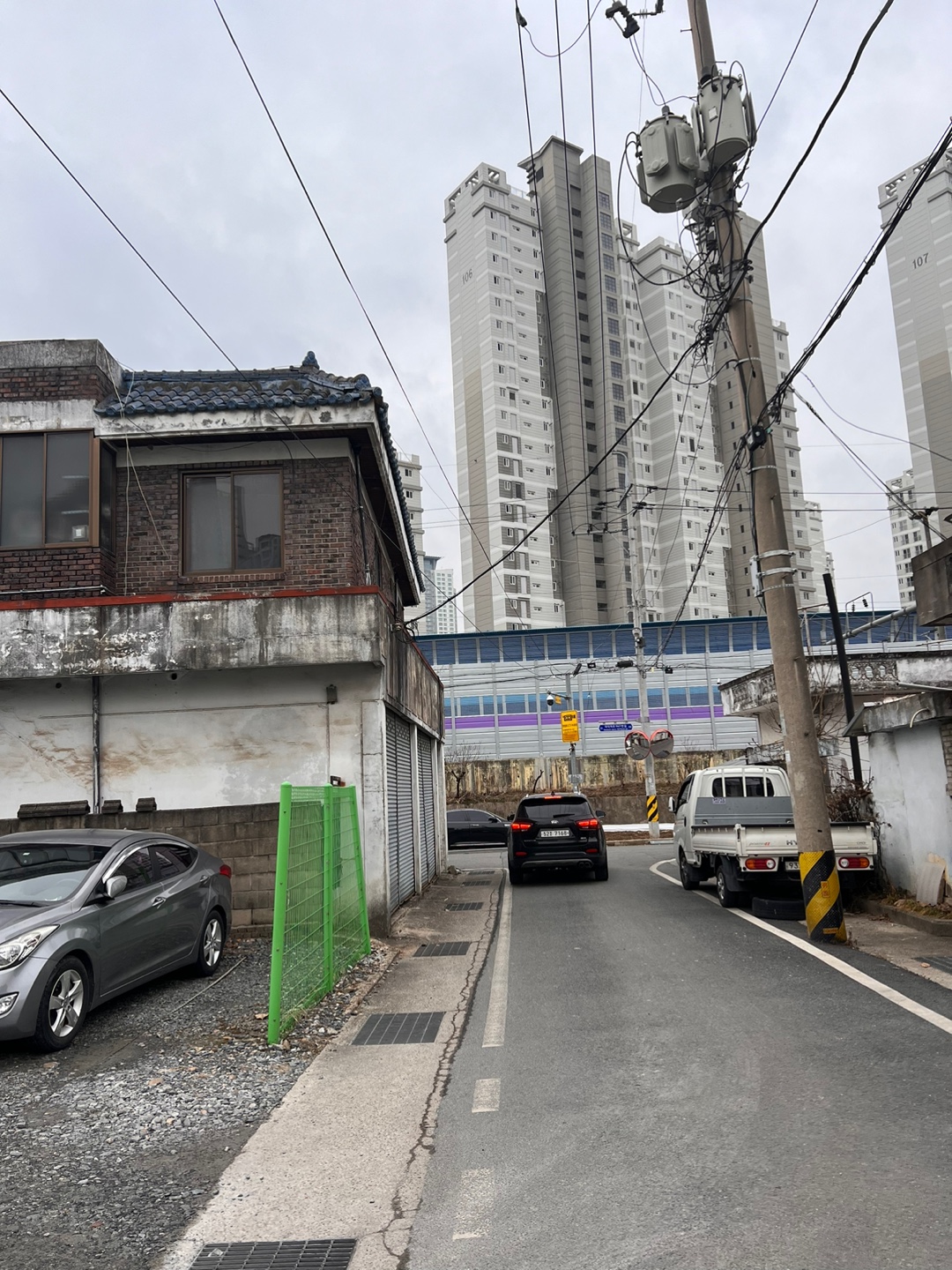 정식 주차장은 아니지만, 모두들 암묵적으로 주차장으로 이용하고 있는 공간인듯 하다.