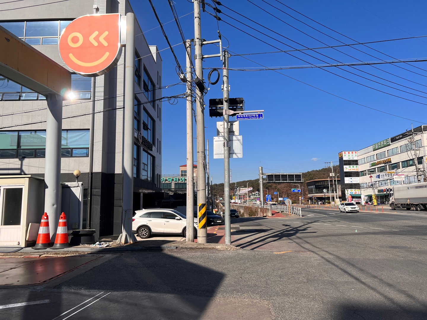 그 주유소를 끼고 골목으로 진입 후 30미터 쯤 이동하면 무료로 제공되고 있는 주차장이 보인다.