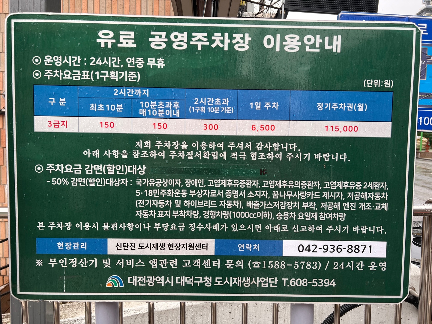 신탄진 공영 주차장 요금표